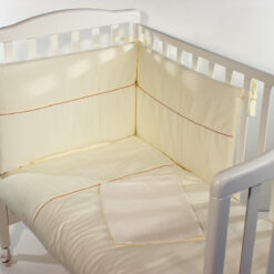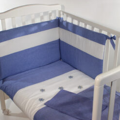 Completo lettino 3 pezzi composto da piumone, paracolpi e federa. Realizzato in 100% cotone e disponibile in diversi colori. Il paracolpi è dotato di comodi laccetti per essere facilmente fissato alle sponde del lettino. Il piumone è composto da una soffice imbottitura interna e da un sacco sfilabile che d’estate, tolta l’imbottitura interna, può essere utilizzato come un fresco copriletto. Ogni coordinato è arricchito da simpatici e colorati ricami che doneranno un tocco in più al lettino del vostro bambino.