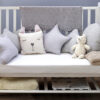 La culla Nami co-sleeping Baby’s Clan con le sue linee semplici e il suo design pulito è ideale per i primi mesi, quando mamma e bimbo hanno necessità di dormire vicino. Si aggancia facilmente a tutti i letti matrimoniali mediante le apposite cinghie in dotazione, ma può essere usata anche in modalità classica: basta tirare su la sponda laterale! Infine, quando il bimbo sarà più grande, Nami potrà essere utilizzata come simpatico divanetto per la sua cameretta! E’ dotata di 4 ruote piroettanti che ne agevolano lo spostamento e viene venduta completa di: materasso, paracolpi, piumone con imbottitura sfilabile e federa. La culla è realizzata in Italia, dipinta a mano con vernici atossiche ed è disponibile solo in bianco. Il coordinato tessile, anch’esso firmato Baby’s Clan, è realizzato in puro cotone in una gradevole fantasia a pois in colori tenui unisex.