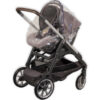 Ricopre completamente il seggiolino e grazie al bordo elastico si fissa alla base senza spostarsi. E’ dotata di apertura passamano per maniglione e fori per il passaggio dell’aria. Il bordo di finitura è in nylon anti-acqua.